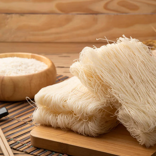 稻花/Cam Rice排米粉配套生产线大批量烘干制作,经过精选一级晚米、早籼米精心搭配,配合大米浸泡、米浆水磨、生丝晾房、熟丝凉房、炊热蒸煮、洗水冷却、人手排丝、烘房焙干、自然回潮等工序
